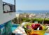 The modern villa has high ceilings and floor length windows embracing the view and providing an airy, light atmosphere. The entrance floor hosts the large living area with adjacent dining room, all opening to the spacious pool area, the kitchen with access to the garden and a bathroom. On the 2nd floor is a large loft bedroom with bathroom as well as a smaller guestroom, both with direct access to a covered terrace, the pool, and the garden. The 2nd floor also hosts the large living area with adjacent outdoor dining areas on the terrace. An old 40 sqm stone house is situated in the garden as well. A closed garage is within the grounds.