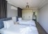 Two separate bedrooms on the upper floor each have a double bed with an en-suite bathroom, air conditioning, wardrobe, and bedside table.