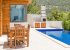 Cute villa for a romantic couples holiday in a beautiful rural location with stunning views. The villa has one bedroom with the en-suite bathroom and one of them has a comfortable jacuzzi in the bedroom. The living room has a comfortable armchair. The kitchen is made from natural wooden units and its fully equipped. There is a dining table for 4 persons. There is a large flat-screen TV with satellite channels and also has wifi internet.Pool Dimensions: Length: 7.30 length, 3.50 width, 1.5 depth.The villa is just 10 minutes drive away from Kalkan and its amazing beaches and restaurants. It has a cooler temperature in very hot July and August seasons. The guest can find a lot of activities to do near the beach or in the mountain.