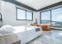 The bright and airy living room is designed with comfort in mind, offering a cozy seating area where you can unwind after a day in the sun. Large windows allow plenty of natural light to fill the space while framing the spectacular sea views. The open-plan design creates a welcoming and sociable environment for spending quality time together.