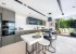 The adjacent cool black and white kitchen is fully equipped with everything you will need to cater for your holiday, including the must-have tea and coffee makers, an island hob and a breakfast bar with stools, and the latest built-in fridge-freezers, oven and microwave, and dishwasher.