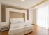 On the second floor, there are 3 bedrooms. One of them is the master bedroom with a double bed and a bathroom inside the room. The other two bedrooms have two single beds each. These two bedrooms have a shared bathroom with access from inside both the rooms.