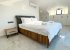 Each bedroom features a queen-size bed, en-suite bathroom, air conditioning, and a private balcony with garden views, offering a peaceful sanctuary after days in the sun. The villa’s bright and open living area includes comfortable seating, a Smart TV, and a fully equipped modern kitchen complete with dishwasher, oven, fridge, and microwave. A dining area for six guests and a sauna room elevate your stay with added comfort and relaxation.