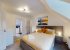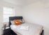 The third bedroom contains a small double bed, a large wardrobe and has a lamp.