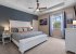 Starting with the large master bedroom downstairs, with a king-sized bed. Plenty of storage for your clothes with huge walk-in closet and dresser. Ceiling fan and huge master bath including a large soaker tub and separate handicap accessible barrier-free roll in shower.