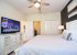 There are 5 bedrooms located upstairs. The spacious primary king suite is located at the front of the home with a king bed, ceiling fan, Smart TV and a large en suite bathroom with shower, separate tub and twin sinks.