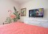 Bedroom 3 is a queen room with a stylish beach theme, ceiling fan, Smart TV and en suite bathroom with shower.