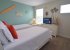Bedroom 4 is a colorful beach-themed twin room with Smart TV. Located just across the hallway is the fourth bathroom with tub/shower, sink and WC.