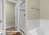 This house has a Half bathroom and a Full bathroom on the downstaris that serves the entire home .