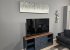 The family room television is equipped with local channels and streaming apps. A combo DVD/VCR player is also provided.