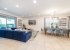 Spacious comfortable seating area with a sectional overlooking the private pool deck through sliding glass doors
