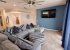 The open-plan living area comprises a large kitchen, well-equipped with everything you’d need for self-catering including oven, hob, microwave, fridge-freezer, dishwasher, kettle, toaster, cookware, crockery, cutlery and glassware. A breakfast bar, with stools, connects to the dining area, which contains a large dining table. In the main living space you can either relax on the large sectional sofa to enjoy entertainment on the 75” Smart TV or just chill at the views which extend beyond the pool and south-facing deck, onto the beautiful lake.