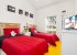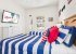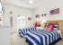 Bedrooms 3 & 4 each have 2 twin beds with a closet, dresser with television. Both bedrooms share a nearby family bathroom with a combi shower-tub , single vanity sink and toilet, with a rear door leading to the pool.