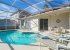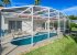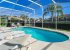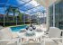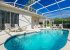 South East facing private swimming pool with outdoor deck with dining area under a shaded lanai.