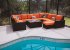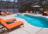 There are 2 tables (seat 6) with umbrellas and 8 chairs plus two rocking chairs for outdoor dining. There are four loungers for those wanting to capture the rays from the Floridian sun. Our orange corner seating is extremely comfortable and a relaxing area to occupy. Great place for sitting out under the starry skies after a day at the parks.