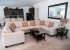 Main Lounge / TV area: Ceiling mounted fan. Large sectional settee and 2 wing back chairs. 65 inch smart TV with sound bar. Side table lamps. AC controller.