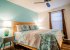 The second king master suite is a relaxing beach-themed room with a king bed, ceiling fan, large SMART TV and en suite bathroom with shower.
